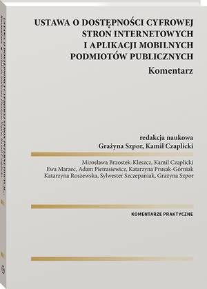 W komentarzu omówiono regulacje dotyczące dostępności cyfrowej stron internetowych i aplikacji mobilnych, które nakładają nowe obowiązki na jednostki sektora finansów publicznych i niektóre inne podmioty. Przedstawiono również wymagania dotyczące funkcjonalności, kompatybilności, postrzegalności i zrozumiałości tych mediów w celu zapewnienia osobom niepełnosprawnym, na zasadzie równości z innymi osobami, dostępu do informacji i komunikacji.