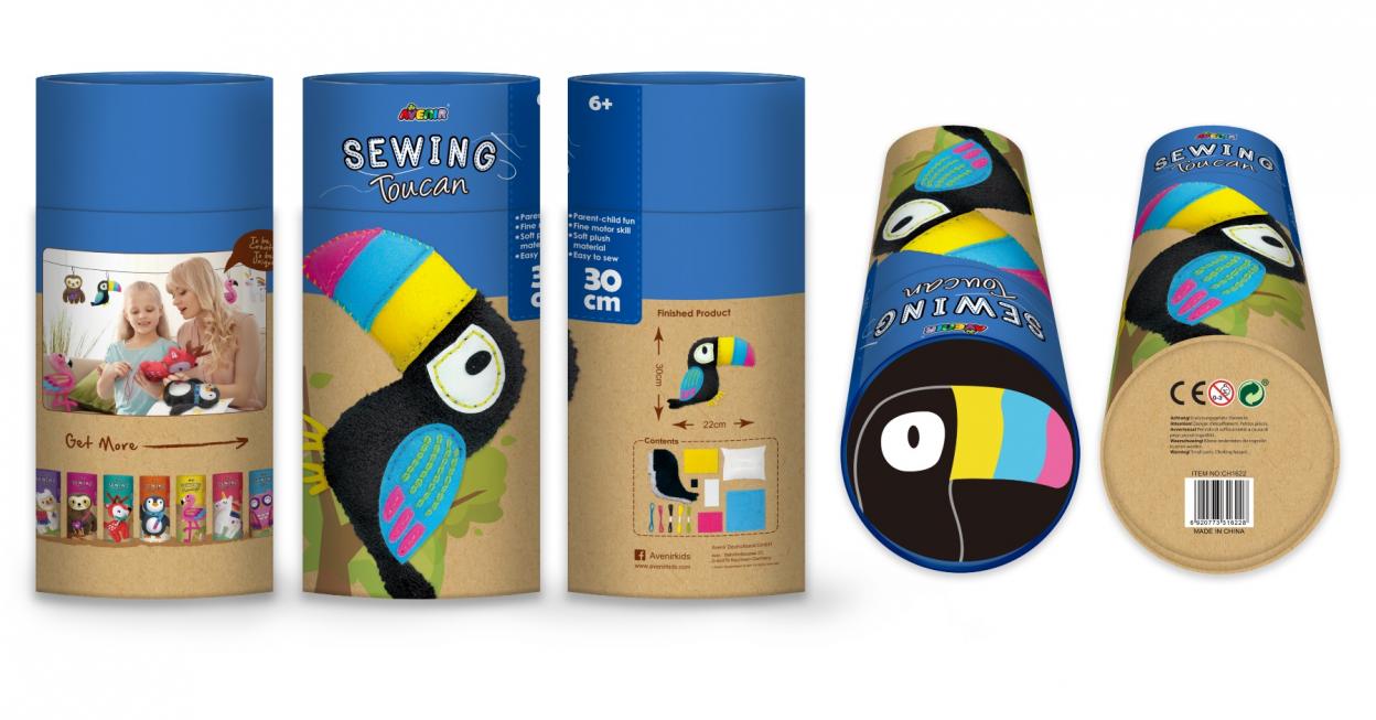 Piękny tukan do włąsnoręcznego uszycia. Miękki materiał, rozmiar pluszaka po uszyciu to 30x22 cm.
