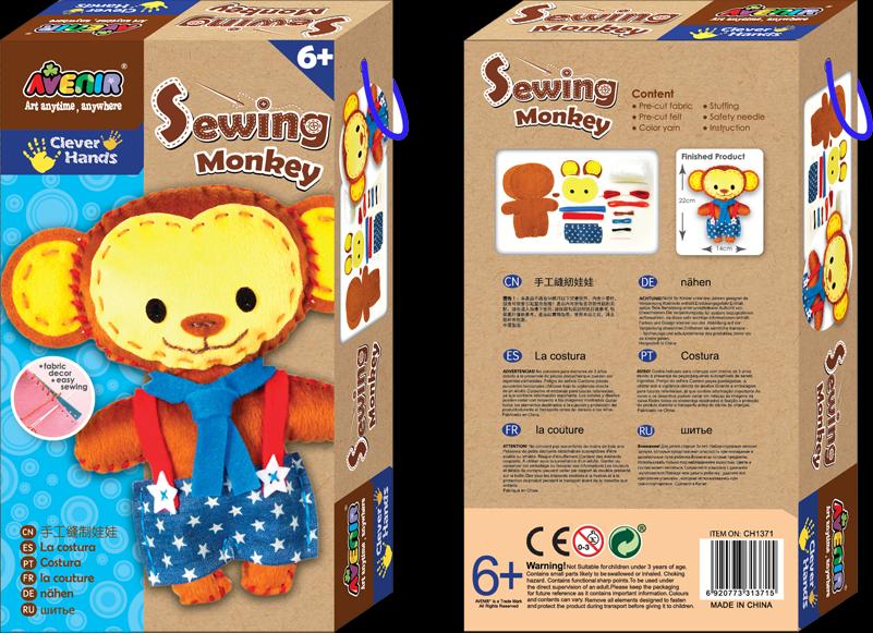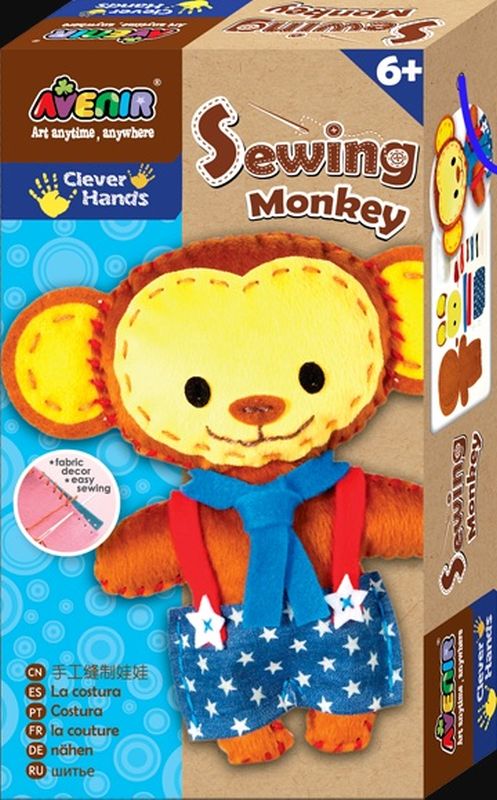 Avenir Sewing to wyjątkowa seria maskotek do samodzielnego uszycia.  Maskotka Małpka ma około 23 cm wysokości. Jest bardzo miła w dotyku i  mięciutka, z przyjemngo w dotyku filcu. W zestawie są wszystkie  niezbędne rzeczy: przygotowany do zszycia materiał, wypełnienie, nici  (mulina), plastikowa bezpieczna igła. Już przedszkolak poradzi sobie z  samodzielnym uszyciem sobie maskotki dzięki bardzo przejrzystej  obrazkowej instrukcji. Avenir Sewing to seria, dzięki której czas  spędzony z dzieckiem na kreatywnej zabawie zaowocuje nie tylko  fantastycznymi wspomnieniami i wzmocnieniem więzi, ale także... nową  ukochaną zabawką! Dla dzieci powyżej 6. roku życia.