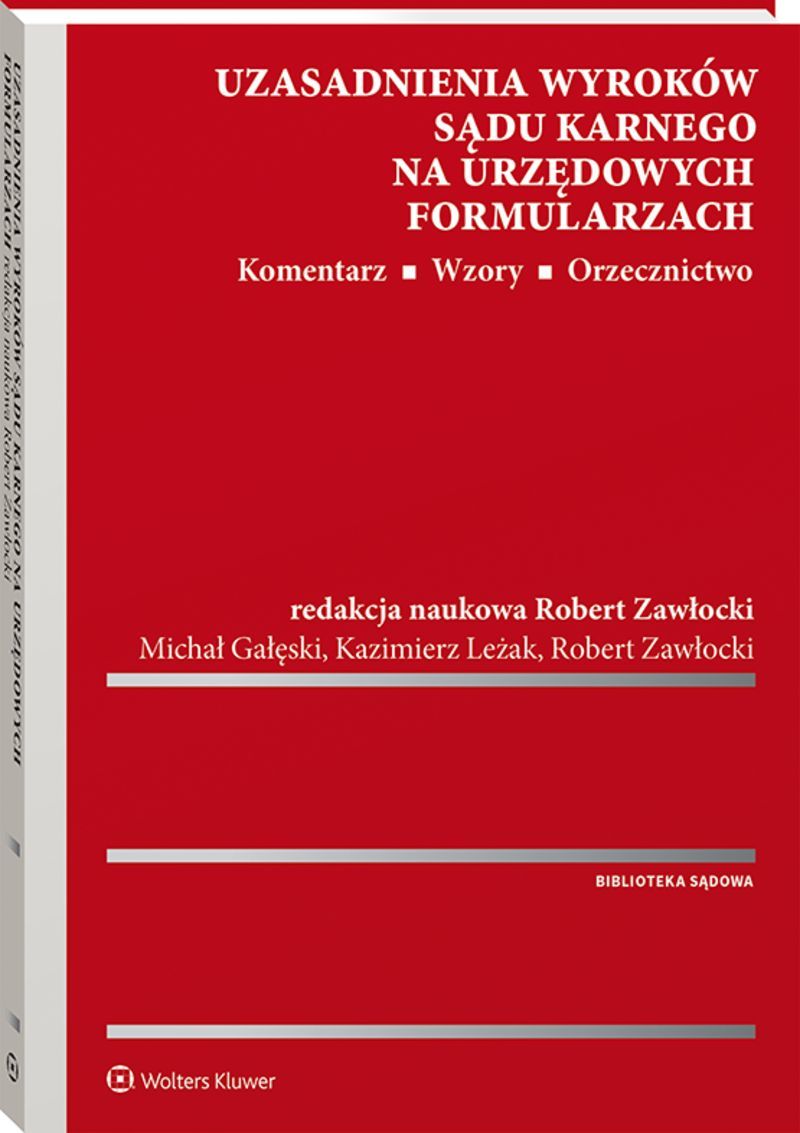 Opis produktuZasady bezpieczeństwaWymóg sporządzania uzasadnień wyroków na urzędowych formularzach to jedno z kluczowych założeń nowelizacji Kodeksu Postępowania Karnego z 2019 r. Publikacja stanowi komentarz do przepisów Rozporządzenia Ministra Sprawiedliwości z dnia 28 listopada 2019 r. w sprawie wzorów formularzy uzasadnień wyroków oraz sposobu ich wypełniania. W prosty i przystępny sposób omówiono stosowanie formularzy uzasadnień wyroków w sprawach karnych: Autorzy podpowiadają, jak uzasadnienie wyroku pisać oraz jak takie uzasadnienie czytać i wykorzystywać procesowo, zwłaszcza przy formułowaniu środków zaskarżenia. W komentarzu podjęto próbę pogodzenia kodeksowych wymogów stawianych uzasadnieniom wyroków w sprawach karnych z obowiązkiem ich sporządzania na urzędowych formularzach. Adresaci: x