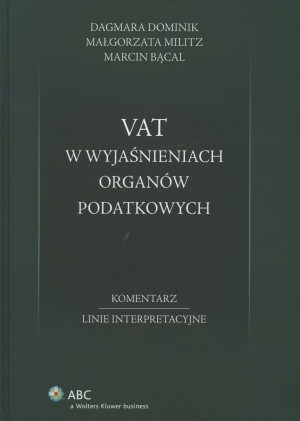 Publikacja ma na celu ułatwienie zaznajomienia się z poglądami resortu finansów dotyczącymi VAT wszystkim tym, którzy na co dzień borykają się z problemami w tym zakresie. Dzięki przejrzystemu układowi umożliwia łatwe i szybkie odnalezienie poszukiwanego zagadnienia i stanowiska prezentowanego przez organ podatkowy. Będzie również pomocna przy ocenie możliwych skutków w zakresie VAT oraz pozwoli na zminimalizowanie ryzyka podatkowego związanego z interesującą Czytelnika transakcją.