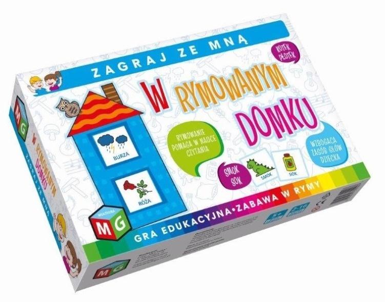 Gra dydaktyczna, która w przyjemny i intrygujący dla dziecka sposób pomaga kształtować umiejętność tworzenia rymów. Miłe dla oka rysunki oraz kolorystyka, skupiają uwagę graczy na zabawie w poszukiwanie rymujących się par wyrazów. Gra wzbogaca słownik dziecka, rozwija umiejętność czytania, umozliwia rozpoznawanie i identyfikowanie kolorów, a przy tym uczy cierpliwości oraz konieczności respektowania ustalonych reguł. Celem gry jest prawidłowe ustalenie wszystkich rymujących się ze sobą par wyrazów. Zawartość pudełka: plansze domki -8 szt, kolorowe suwaki- 16 szt, instrukcja.