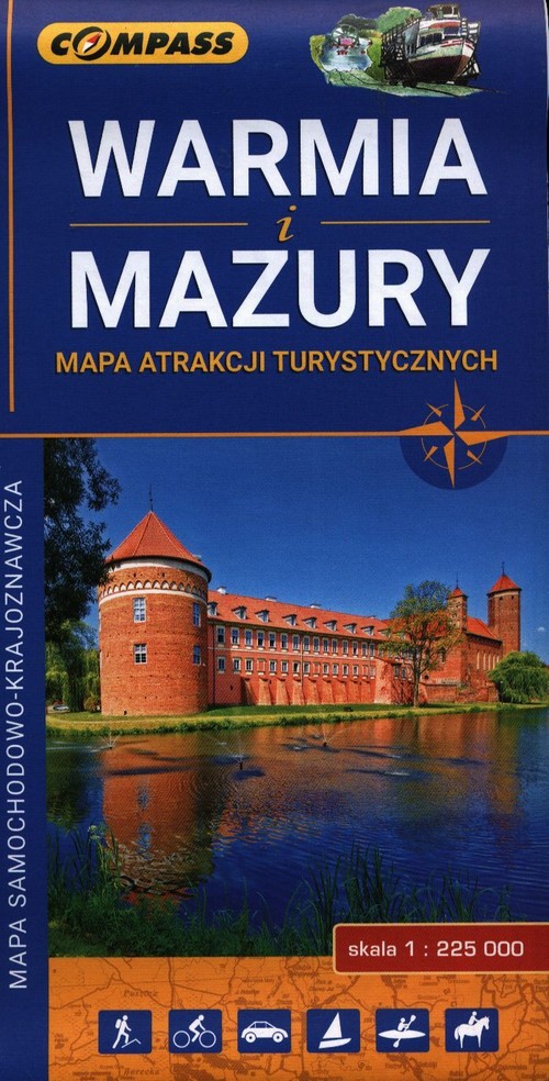 Niniejsze wydawnictwo to ogólna mapa poglądowa rozległego obszaru, jakim są Warmia i Mazury. Dedykowana jest zwłaszcza turystom zmotoryzowanym. Przedstawiono na niej aktualną sieć dróg, wybraną bazę noclegową oraz propozycje najciekawszych atrakcji regionu. Wśród nich znajdują się: zamki, pałace, kościoły, muzea, zabytki techniki, obiekty militarne, cuda przyrody, wyróżniające się miejsca widokowe i panoramy. Na odwrocie mapy zamieszczono krótki opis polecanych miejsc. Co warte podkreślenia, obiekty te zostały wybrane i opisane przez człowieka legendę tego regionu - szefa oddziału PTTK Olsztyn, znawcę i autora licznych publikacji o Warmii i Mazurach - Mariana Juraka.