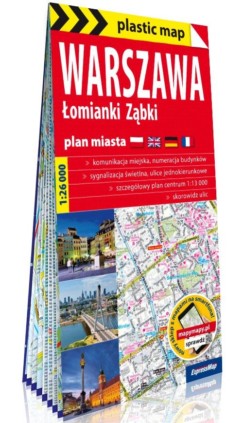 Jak najszybciej dojechać na Stadion Narodowy? Gdzie zaparkować w okolicy Starówki? Dwustronnie foliowany, trwały plan Warszawy pomoże odnaleźć się w stolicy. Na planie zamieszczono: szczegółowy rysunek zabudowy wraz z numeracją budynków wzdłuż ulic i na osiedlach, linie autobusowe i tramwajowe wraz z przystankami, linie metra, Szybkiej Kolei Miejskiej (SKM) i Warszawskiej Kolei Dojazdowej (WKD), sygnalizację świetlną, ulice jednokierunkowe, parkingi, bogatą treść turystyczna, m.in.: zabytki, muzea, hotele i inne istotne obiekty, budynki użyteczności publicznej, centra handlowe, szczegółowy plan centrum w skali 1:13 000 (1 cm 130 m), skorowidz ulic. x