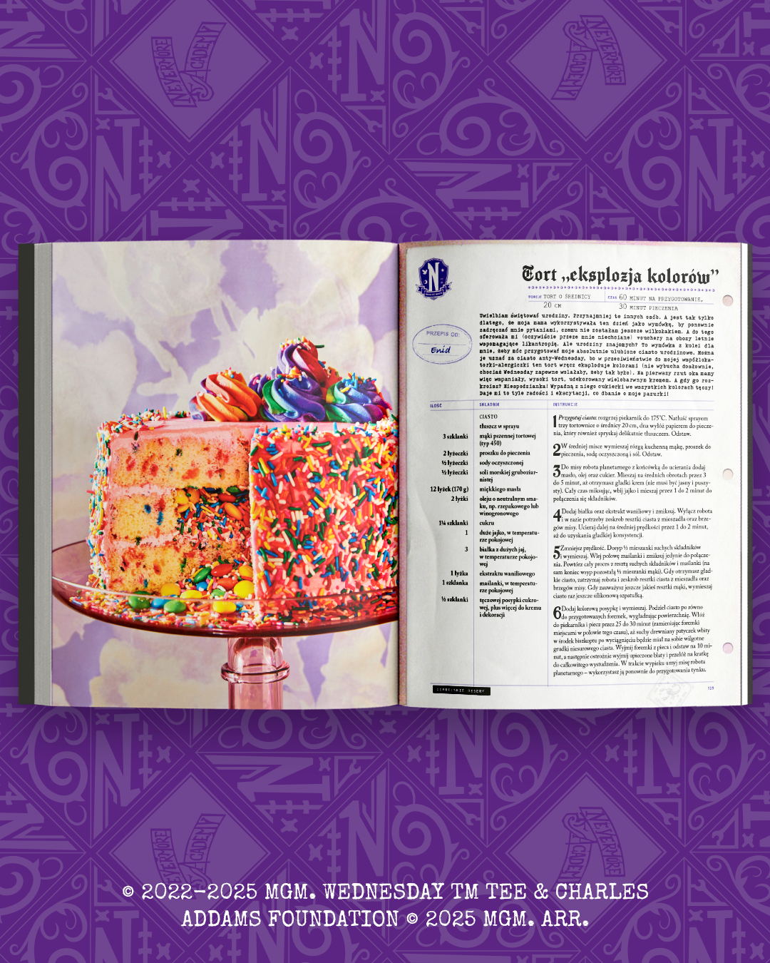 Opis produktuZasady bezpieczeństwaUnitas est invicta Przekrocz ciężkie bramy akademii Nevermore i odkryj jej najciemniejsze kulinarne sekrety. Z pomocą sześćdziesięciu nadzwyczajnych przepisów, zebranych od członków naszej upiornie utalentowanej społeczności, przygotujesz makabryczne (i pyszne!) dania - nawet w swojej zwyczajnej kuchni. Mięso dla wilkołaków? Mamy! Dania dla unikających koloru czy glutenu? Również mamy! Znajdziesz tu też przepisy wegetariańskie i peskatariańskie oraz opcje bez nabiału (czy rytualnych mordów). A wszystko to okraszone porażająco pysznymi zdjęciami. Księga zawiera też specjalistyczne porady - prosto od naszych ekspertów: jak urządzić Bal Kruka, wieczerzę dziękczynną w stylu Nevermore czy spotkanie Tajnego Stowarzyszenia. Zasiądź z nami do stołu i szykuj się kulinarne dziwy w stylu nevermore! x