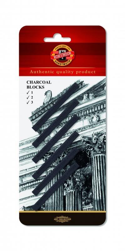 Węgiel prasowany w sztyftach o wymiarach 7x7x70 mm, pakowany po 6 sztuk na blistrze z danej twardości.