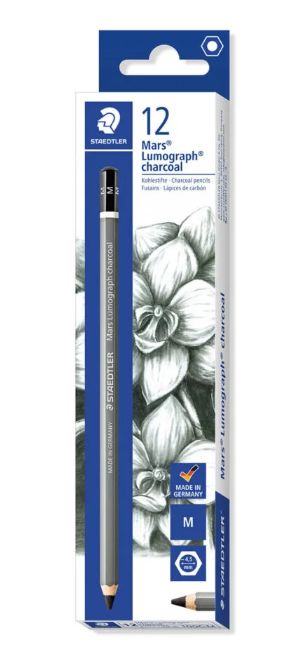 Węgiel w ołówku Mars Lumograph Carcoal Staedtler średni 12 sztuk