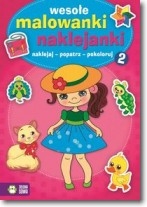 Seria ""Malowanki - naklejanki"" zawiera proste rysunki do pokolorowania według wzoru kolorystycznego, jakim jest naklejka. Zabawy w kolorowanie służą doskonaleniu umiejętności utrzymania się w konturach i odwzorowywania oraz poszerzają zasób słownictwa dziecka poprzez nazywanie przyklejanych elementów i swobodne wypowiedzi na ich temat.