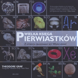 Niesamowite fotograficzne przedstawienie 118 pierwiastków układu okresowego.Książka przedstawia pierwiastki w kolejności pojawiania się w układzie okresowym. Prezentuje każdy z nich (gdzie tylko to możliwe) na dużej pięknej ilustracji w swojej naturalnej postaci. Na przykład tlen (pierwiastek numer 8) jest bezbarwnym gazem, ale w temperaturze- 183°C zamienia się w bladoniebieską ciecz. Fotografie przedstawiają również przykłady, w jaki sposób pierwiastki istnieją w świecie- w związkach i zastosowaniach, w których doświadczamy ich obecności w codziennym życiu. Razem z historią każdego pierwiastka podane są podstawowe dane włączając masę atomową, promień atomu, diagram budowy krystalicznej oraz rysunki przedstawiające obsadzenie powłok elektronami, widmo emisyjne, a także wykres temperatur, przy których pierwiastki mają postać stałą, ciekłą bądź gazową. Nowoczesne połączenie solidnej wiedzy i mistrzowskich zdjęć sprawia, że Wielka księga pierwiastków jest doskonałą książką dla osób zainteresowanych otaczającym nas światem.
