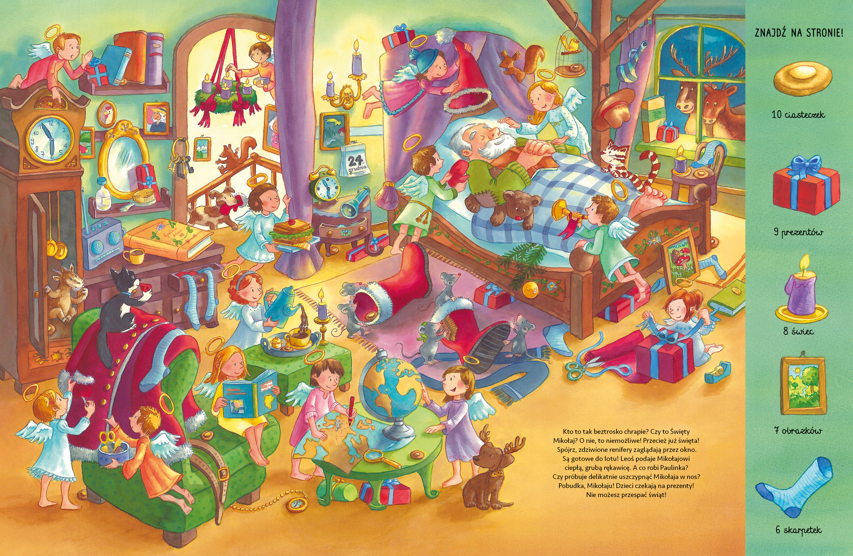 Opis produktuZasady bezpieczeństwaŚwięta tuż-tuż a Mikołaj nadal smacznie chrapie. Kto przygotuje wszystkie prezenty? W warsztacie Świętego Mikołaja słychać stukanie, wiercenie i piłowanie. To elfy robią zabawki dla dzieci. Czy ktoś widział młotek? Wszystkie się gdzieś zgubiły W kuchni pachnie cynamonem i lukrem. Piec jest już gorący, czas wkładać pierniczki. Trzeba prędko rozwałkować ciasto! Czy odszukasz wałek i zagubione foremki? I w końcu najprzyjemniejsze - ubieranie choinki. Ale gdzie się podziały bombki? Dlaczego brakuje gwiazdek? Gdzie zginęły kokardki? Czy potrafisz znaleźć je wszystkie? Zostań pomocnikiem Świętego Mikołaja i odszukaj zagubione przedmioty! Recenzje:✖ Opinia niepotwierdzona zakupem