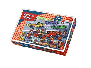 Puzzle 100 elementów z serii Action Time. Po ułożeniu powstanie obrazek o wymiarach 41x27,8 cm. Wysoką jakość, nasycenie kolorów i bezpieczeństwo układania zapewnia kalandrowany papier odbijający światło i wykorzystanie materiałów ekologicznych.