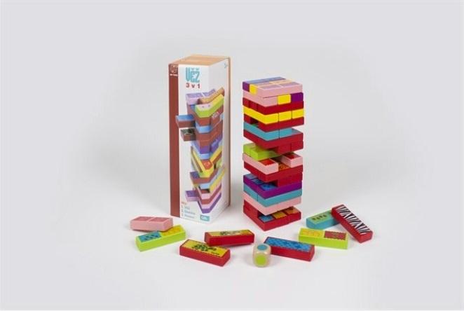 Najniższa cena z ostatnich 30 dni: 48,00 zł Opis produktuZasady bezpieczeństwaGra 3 w 1 - jenga, domino i memory. Zawiera 52 kolorowe drewniane klocki. Wiek graczy: 3+ Liczba graczy: 2+ Czas rozgrywki: 20 minut x