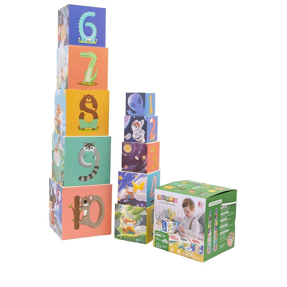Opis produktuZasady bezpieczeństwaWieża składa się z 10 kartonowych sześcianów, które należy ułożyć od największego do najmniejszego.