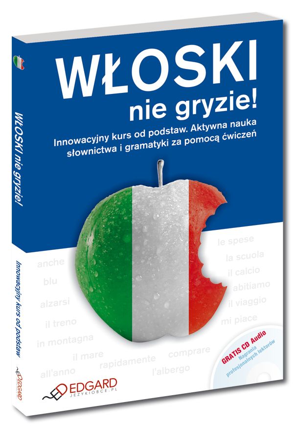 WŁOSKI nie gryzie! to kurs, z którym:- aktywnie uczysz się języka od podstaw,- przyjemnie poznajesz użyteczne słownictwo,- praktycznie trenujesz znajomość gramatyki,- uczysz się gotowych zwrotów konwersacyjnych,- ćwiczysz wymowę, dzięki nagraniom na płycie CD Audio,- poznajesz współczesny, codzienny język włoski.Kurs przeznaczony jest zarówno dla uczniów, jak i dorosłych samouków dopiero zaczynających naukę, którzy chcą łatwo i przyjemnie opanować podstawy języka włoskiego na poziomie komunikacyjnym.Książka (160 str.) opiera się na niezwykle atrakcyjnej metodzie aktywnej nauki języka poprzez rozwiązywanie różnorodnych ćwiczeń. W rozdziałach tematycznych znajdziesz: blisko 100 najpopularniejszych zagadnień, krótkie dialogi lub teksty z polskim tłumaczeniem, gramatykę w pigułce, porcję niezbędnego słownictwa, ćwiczenia, ciekawostki o kulturze oraz specjalną sekcję Sprawdź się z zadaniami podsumowującymi. W każdej chwili masz dostęp do umieszczonych na marginesach praktycznych minisłowniczków, a dodatkowo na końcu książki znajdziesz podręczny zbiorczy słownik.GRATIS płyta CD Audio z nagraniami profesjonalnych lektorów, która pomaga w nauce poprawnej wymowy i skutecznym zapamiętywaniu niezbędnych słów i zwrotów.Odkryj unikalną metodę aktywnej nauki. Przekonaj się, że włoski nie gryzie!
