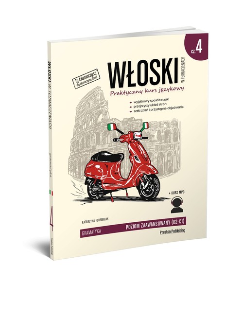 Włoski w tłumaczeniach. Gramatyka 4 to ostatnia część niezwykle skutecznej i przystępnej serii do nauki języka włoskiego. To idealny materiał uzupełniający tradycyjne kursy językowe, naukę w szkole lub na uniwersytecie. Uczniom pomoże przygotować się do egzaminów, nauczycielom ułatwi opracowanie materiałów na zajęcia.