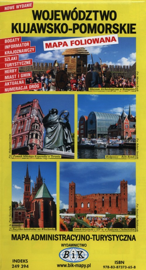 Na odwrocie: opis województwa kujawsko-pomorskiego, opisy Bydgoszczy i Torunia, poszczególnych powiatów, ważniejszych miejscowości w województwie oraz ośmiu parków krajobrazowych.