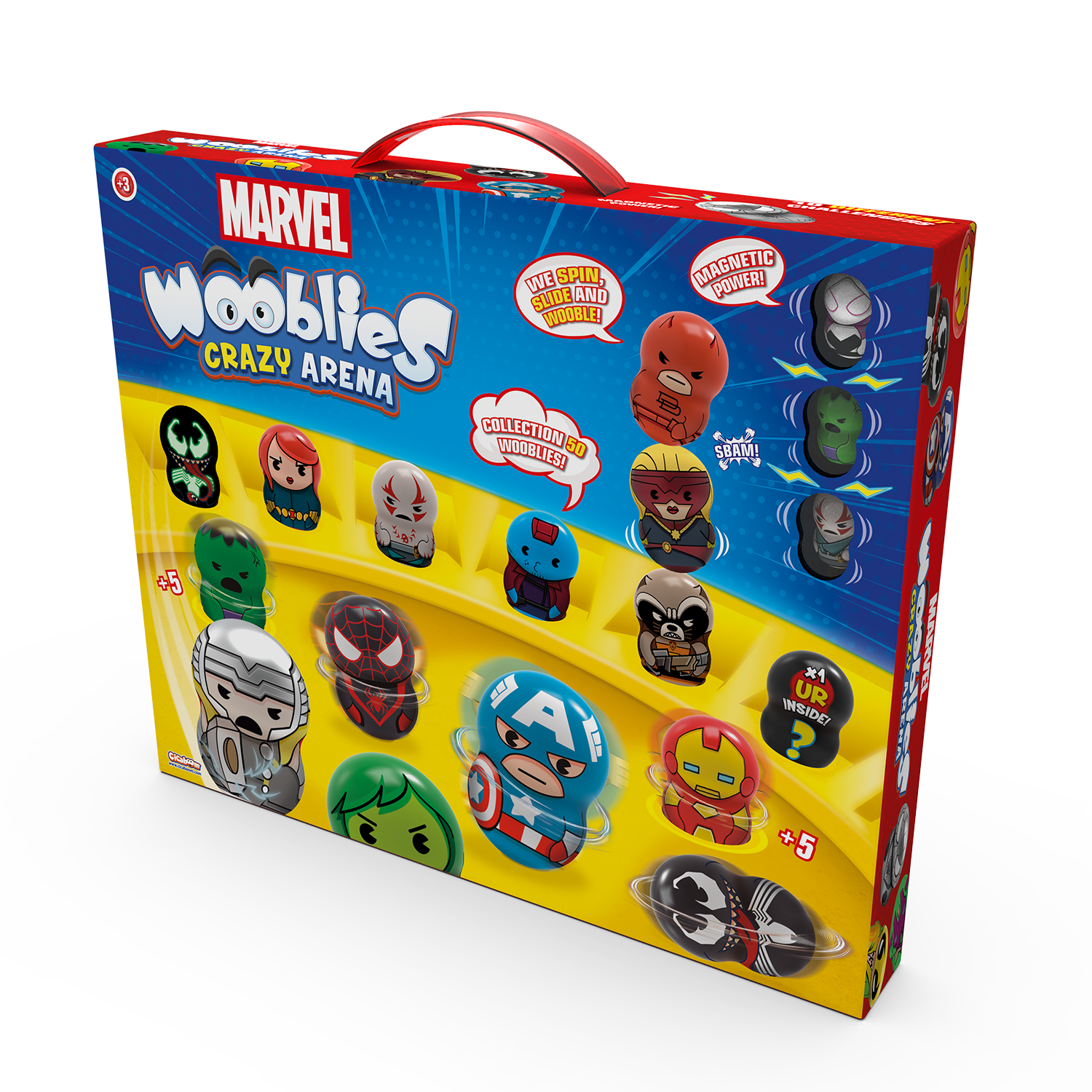 To świetna zabawa dla wszystkich tych, którzy uwielbiają rywalizować i świetnie się bawić! Zestaw Battle Arena zawiera aż 4 figurki Wooblies z serii 50 Marvelowych postaci. Dodatkowo dołączona jest jedna ulotka z grami i listą kolekcjonerską, 4 kart bohaterów oraz jedną wyrzutnie i Arenę do rozgrywania bitew Wooblies! Jakość Wooblies to mnóstwo radości, którą gwarantuje staranne wykonanie oraz precyzyjnie wyważone magnesy znajdujące się w każdej figurce. Bezpieczeństwo W pełni bezpieczne zabawki przeznaczone dla dzieci w wieku powyżej 3 lub powyżej 5 lat (w zależności od zestawu). Produkty z serii spełniają europejskie standardy. Wygląd Ta seria figurek bohaterów komiksów Marvela, które po starciach pełnych zawirowań, obrotów i przewrotów wracają do pozycji pionowej. x