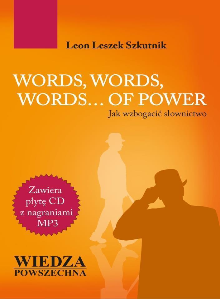 WORDS, WORDS, WORDS... OF POWER Jak wzbogacić słownictwo"" jest efektem doświadczeń zgromadzonych przez całe życie jednego z najbardziej doświadczonych polskich autorów podręczników do nauki języka angielskiego Pana Leona Leszka Szkutnika. Kolejna już część serii jest dopełnieniem a nawet rozszerzeniem wcześniejszych tytułów ,,Mówimy po angielsku"" oraz ,,Myślimy po angielsku"". Sa-mo założenie, jakie zostało zrealizowane w książce, że istnieją wyrazy popularne zarówno w języku polskim jak i angielskim, których użycie może znacząco wzbogacić zasób słownictwa tak potrzebnego do płynnej konwersacji na różne tematy a o których często zapominamy lub są nam nieznane w połą-czeniu z wyrazami typowymi dla konwersacji na wyższym poziomie daje bardzo ciekawy podręcznik wart uwagi. Ponadto książka zawiera płytę pełną dialogów do ćwiczeń, która, została nagrana przez profesjonalnych lektorów będących aktorami BBC, ich wymowa jest wzorcowa, co pozwala na naukę od najlepszych.