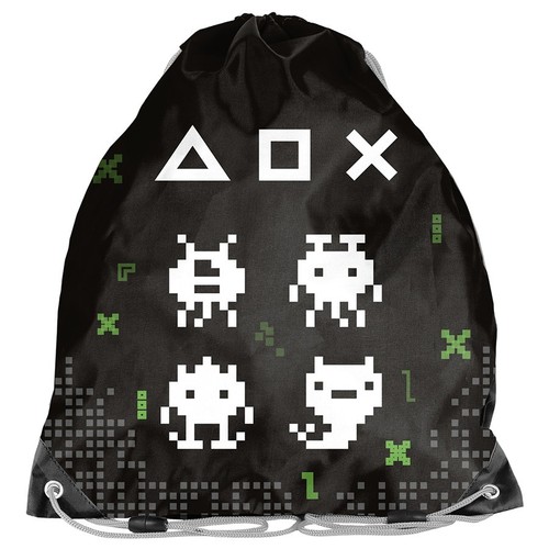Worek na obuwie Gaming. Jednokomorowy worek o szerokim zastosowaniu. Świetnie sprawdzi się jako worek na obuwie, strój gimnastyczny lub drobny plecaczek. Model zamykany jest podwójnym ściągaczem, dzięki czemu dostęp do zawartości jest łatwy i szybki. Sznurki wyposażone zostały w przerywacze zapewniające bezpieczeństwo w przypadku splątania. Podwóje sznureczki umożliwią noszenie worka na plecach lub na ramieniu.