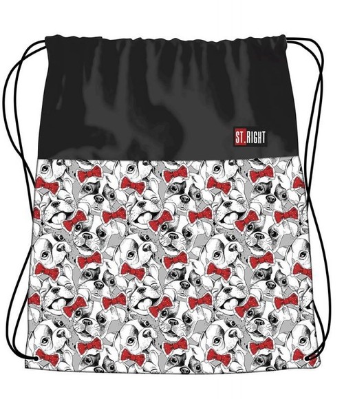 posiada podwójne boczne sznurki, które umożliwiają noszenie worka w rękach, na ramieniu oraz na plecach