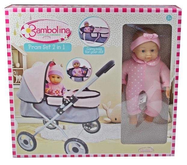 Wózek głęboki z lalką Bamboliną BD2113 AN01
