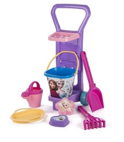 W jego skład wchodzi wózek na kółkach z pojemnikiem oraz łopatka, grabki, dwie foremki, konewka oraz sitko. Poręczny wózek ułatwia transport całego zestawu i sprawia że wypad na plażę jest przyjemną zabawą.