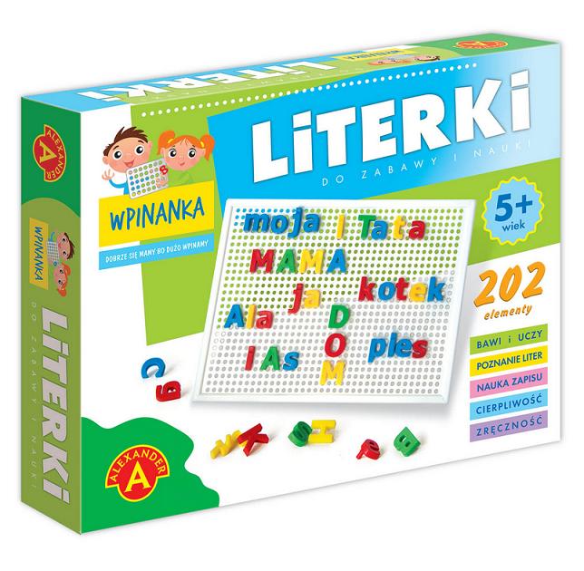 Opis produktuZasady bezpieczeństwaZbiór kolorowych literek (zarówno wielkich jak i małych), z których każda posiada element umożliwiający wpinanie ich w otwory ażurowej tablicy. Ta prosta zabawa jest doskonałym pretekstem do nauki alfabetu, pisania oraz czytania. Zabawka umożliwia zapisywanie pierwszych wyrazów i zdań. Zabawka uczy również cierpliwości i rozwija sprawność manualną. Zawartość opakowania Ażurowe tablice - 2 sztuki. Kolorowe elementy - 202 sztuki. Instrukcja. x