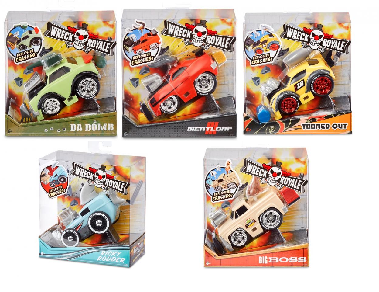 Opis produktuZasady bezpieczeństwaWreck Royale to nowe zderzające się i eksplodujące pojazdy. Kiedy auta się zderzą, przewrócą się to ich części eksplodują na różne kierunki. Dzieci mogą mieszać i łączyć części jak chcą, aby stworzyć nowy wygląd pojazdu. Nie wymagają baterii! W asortymencie 5 różnych pojazdów: Ricky Rodder, Tooned Out, Big Boss, Da Bomb and Meat Loaf. x