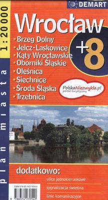 Plan Wrocławia w skali 1:20 000 plus centrum w skali 1:10 000 Wzbogacony o plany najważniejszych miast w okolicy. - Ulice jednokierunkowe - Sygnalizacja świetlna - Linie komunikacyjne - Spisy ulic i informacje teleadresowe okolicznych miast - Szlaki turystyczne i ścieżki rowerowe.