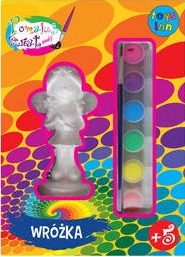 Zawiera figurkę wróżki, farby w 6 kolorach, pędzelek.