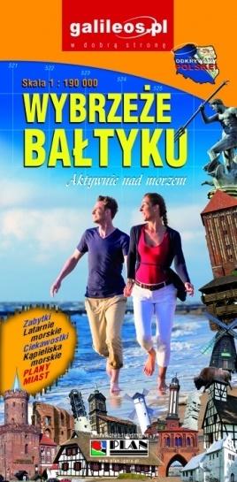 Krajoznawcza mapa całego wybrzeża z zaznaczonymi najważniejszymi atrakcjami turystycznymi. Dodatkowo na mapie znajdują się plany: Gdyni, Sopotu, Gdańska, Jastrzębiej Góry, Łeby, Ustki, Kołobrzegu, Rewala, Niechorza, Międzyzdrojów i Świnoujścia.