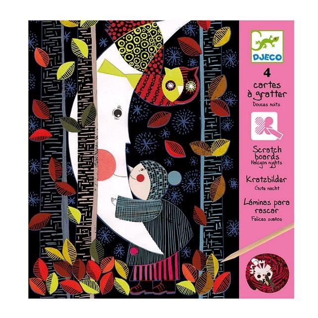 Zestaw 4 pięknych zdrapywanek Noc na foliiPatyczkiem,który jest w zestawie należy zdrapywać kolejne partie farby,pod którą ukryty jest rysunek.Zestaw zawiera:-4 karty-1 patyczek-dołączona instrukcje ""krok po kroku"" ułatwi wykonie pracy.Wiek:7-13 lat.Wielkość kart/opakowania : 22 x 23 cm