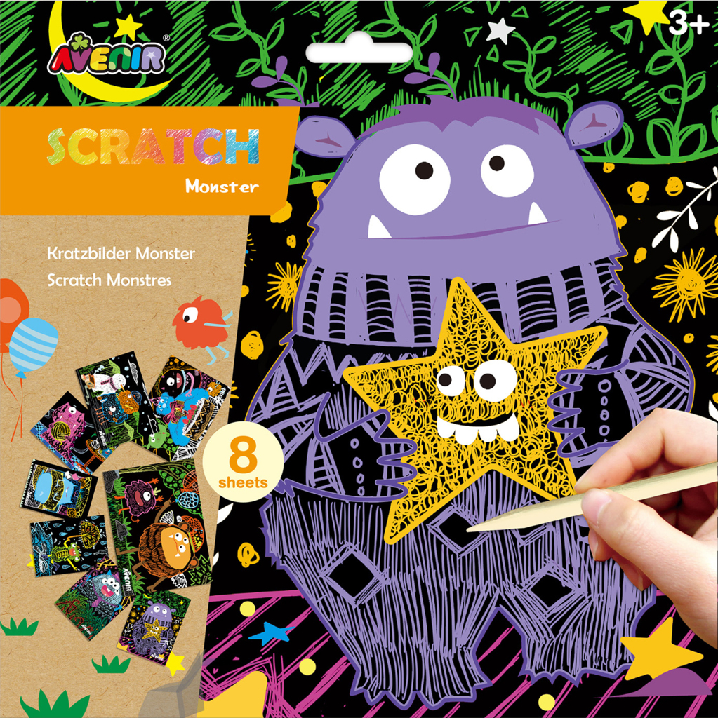 Opis produktuZasady bezpieczeństwaAvenir Scratch to zupełnie nowe podejście do prac ręcznych. Wyjątkowy arkusz, na którym tworzy się poprzez zdrapywanie warstwy wierzchniej, by odsłonić wielobarwną warstwę spodnią. Wydrapywanka to zabawka kreatywna najwyższych lotów, pozwalająca nie tylko tworzyć piękne prace, ale także dająca doświadczenia sensoryczne - dzięki użyciu odpowiedniego narzędzia i zachowywania się papieru podczas zabawy dziecko odbiera nowe wrażenia dotykowe. W zestawie: