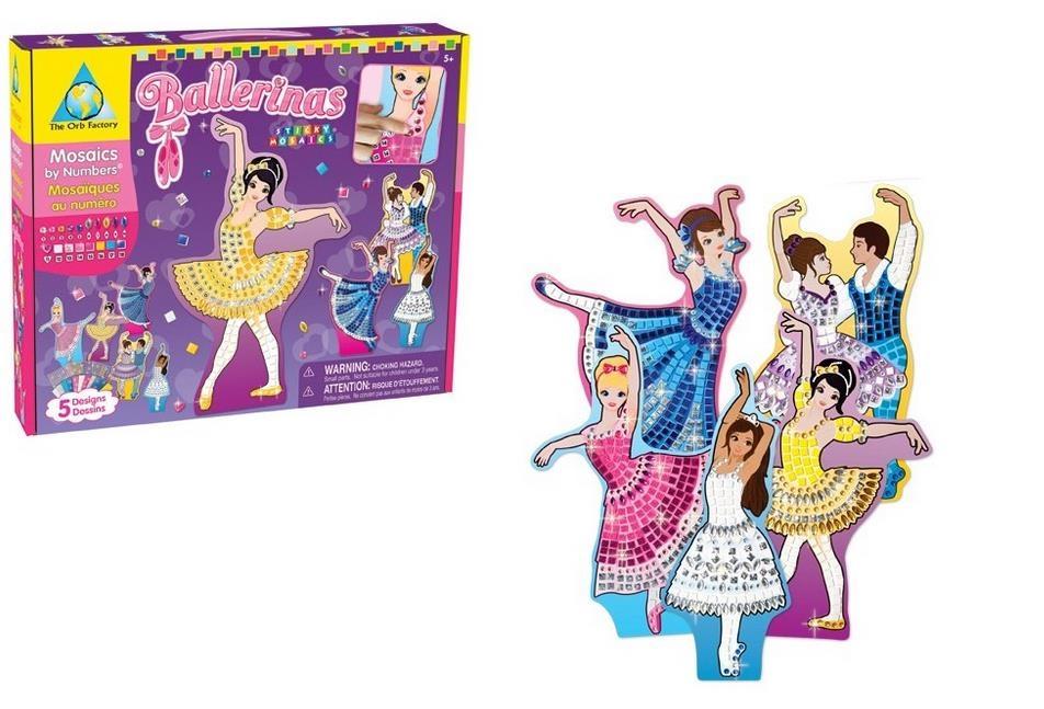Zestaw kreatywny , w którym dziecko dekoruje wzory tańczących baletnic naklejkami o różnych kolorach,strukturach i kształtach.