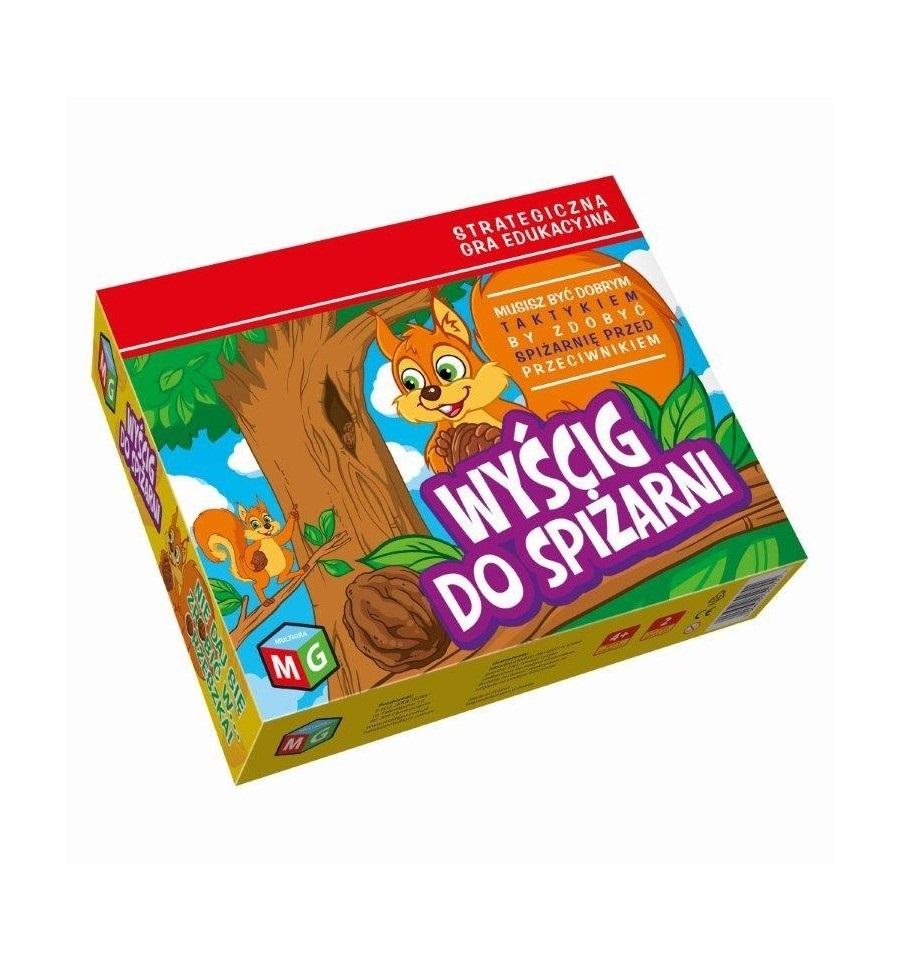 Opis produktuZasady bezpieczeństwaGeniusz tkwi w prostocie. Ta sentencja idealnie pasuje do gier planszowych, w których zawiła instrukcja często odpycha, a największą frajdę zapewniają zabawy, po które można sięgnąć w każdej wolnej chwili. Taką propozycją jest Wyścig do spiżarni, który rozwija kultową rozrywkę. Chyba nie ma na świecie osoby, która nie zna gry w kółko i krzyżyk. Prosta, rozwijająca, wspierająca logiczne i przestrzenne myślenie świetnie sprawdza się zarówno w kształtowaniu dzieci, jak i intelektualne wyzwanie dla dorosłych. MultiGra odświeżyła koncepcję tej rozrywki, wzbogacając ją o wciągającą fabułę i rozbudowując o kolejne etapy pojedynku. W Wyścig do spiżarni gracze wcielają się w rolę wiewiórek, które przygotowują zapasy orzechów na zimę. Nie mają one jednak wystarczającej liczby spiżarni, o które toczą między sobą trudny, nieustępliwy i intelektualny bój. Aby zdobyć jedną z nich muszą wygrać pojedynek i oznaczyć ją specjalnym żetonem. Droga do zwycięstwa wiedzie poprzez ułożenie 3 orzechów w jednym rzędzie. Pionowo, poziomo lub po przekątnej. Jedna przegrana bitwa nie decyduje o losach całej gry. Zwycięzcą zostanie osoba, która na koniec zajmie więcej spiżarni. Zalety gry Wyścig do spiżarni: