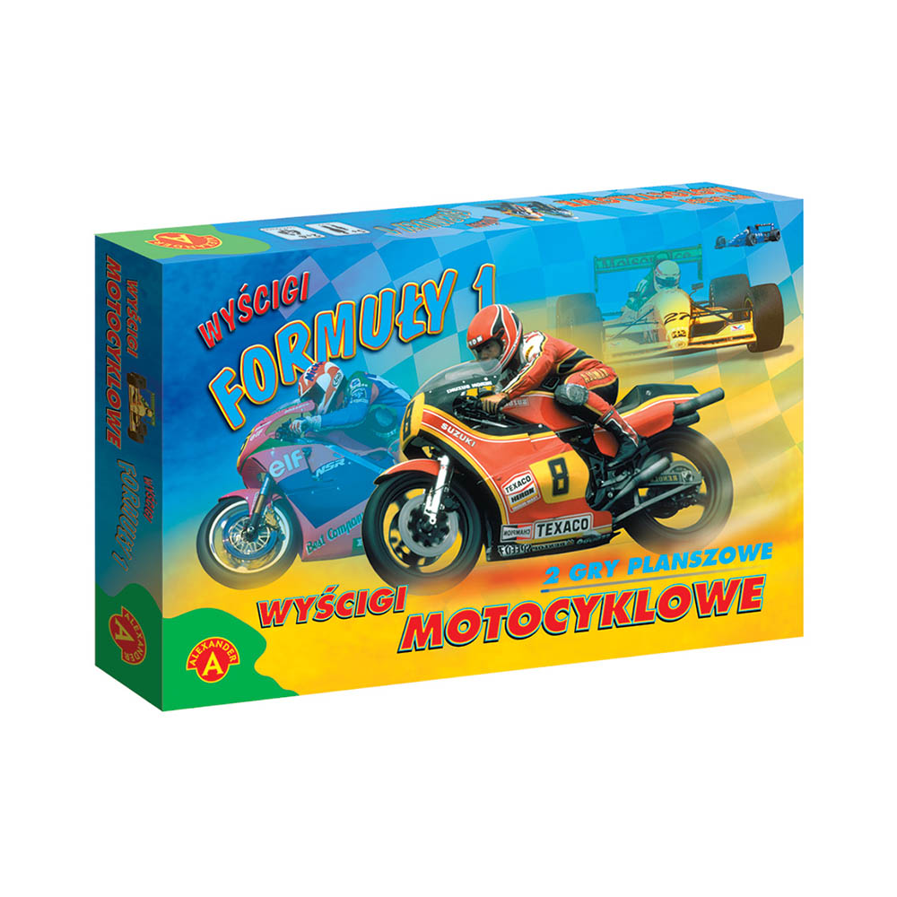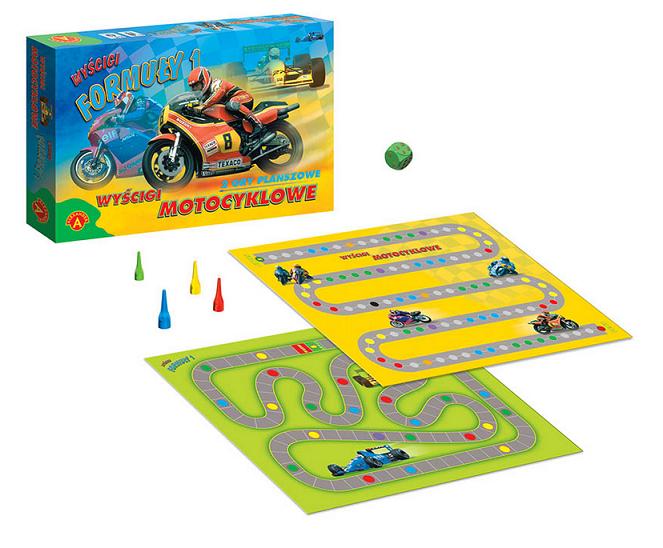 "Wyścigi motocyklowe" i "Wyścigi formuła 1" to dwie ekscytujące gry planszowe. Gracze rywalizują ze sobą na torze formuły 1 lub motocyklowym . Wygra ten, kto pokonując wiele przeszkód na drodze pierwszy dojedzie do mety.