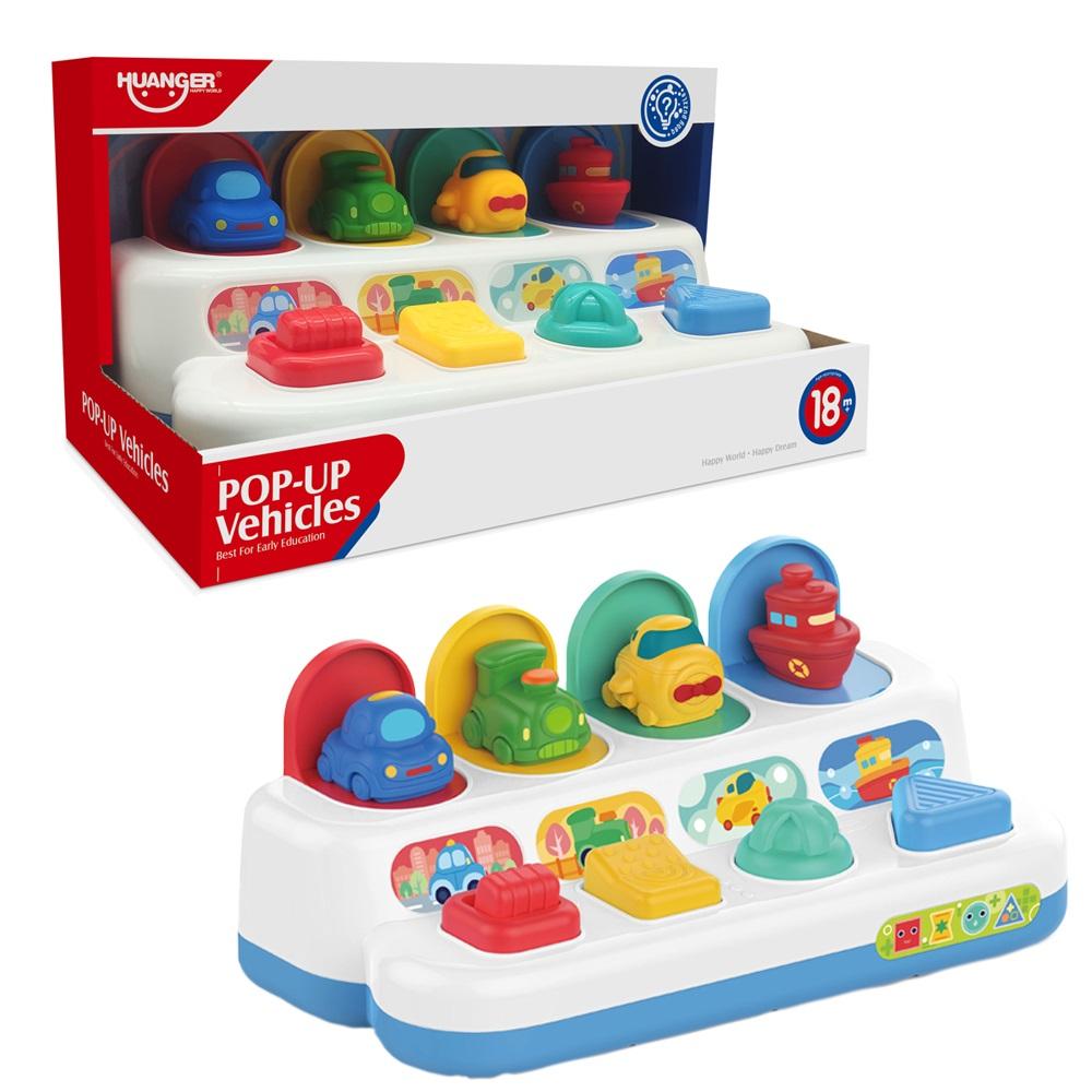 Opis produktuZasady bezpieczeństwaZabawa polega na przesunięciu lub wciśnięciu lub przekręceniu jednego z czterech kolorowych przycisków, tak by na górze wyskoczyło autko w odpowiadającym kolorze. Wiek: +18m x