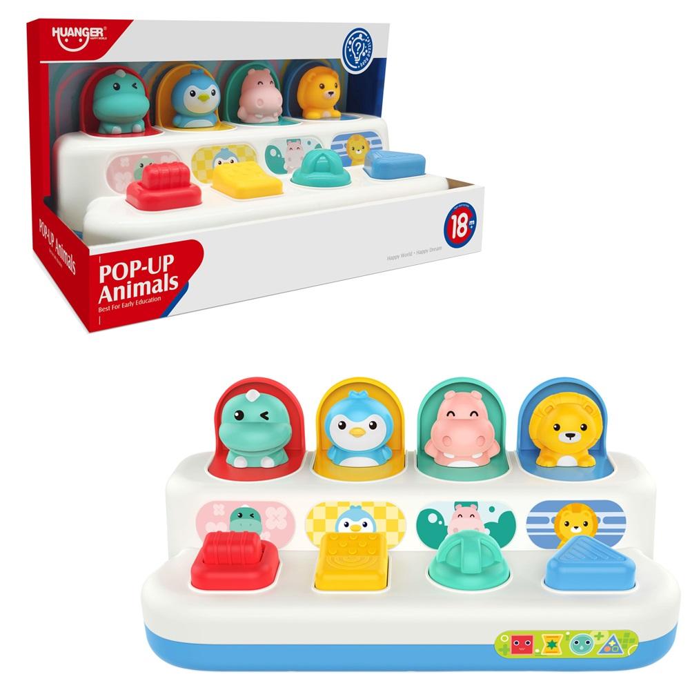 Opis produktuZasady bezpieczeństwaZabawa polega na przesunięciu lub wciśnięciu lub przekręceniu jednego z czterech kolorowych przycisków, tak by na górze wyskoczyło zwierzątko w odpowiadającym kolorze. Wiek: +18m x