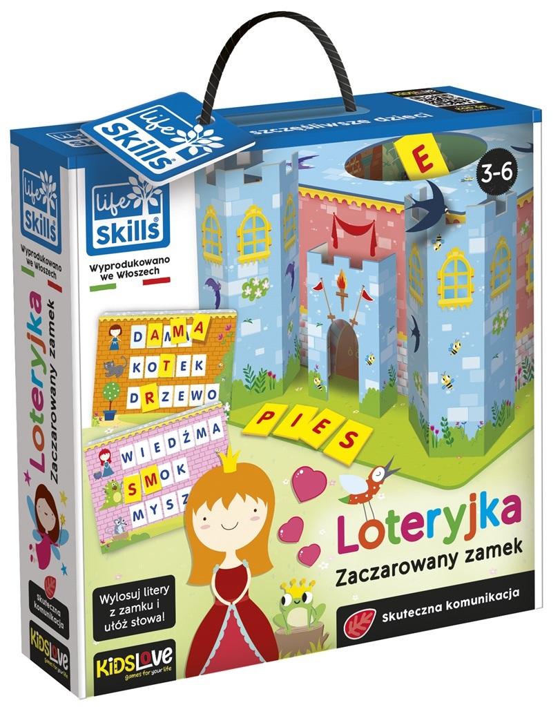 Zestaw edukacyjny zawierający zaczarowany zamek dzięki któremu dziecko pozna litery znajdujące się w alfabecie, a także pierwsze słowa, które znajdują się na kartach i które trzeba ułożyć, nakładając literki w odpowiednich miejscach. Zabawa i edukacja to nowa seria edukacyjna, która pozwala dzieciom na poznawanie określonych obszarów i zdobywanie istotnych kompetencji, które są istotne w późniejszych etapach życia. Światowa Organizacja Zdrowia wyodrębniła 10 umiejętności życiowych, które są potrzebne by wyrosnąć na lepszą i szczęśliwszą osobę, która jest w stanie prowadzić godne życie. I to właśnie te umiejętności są rozwijane w grach z tej serii, które są również dla dziecka świetną zabawą.