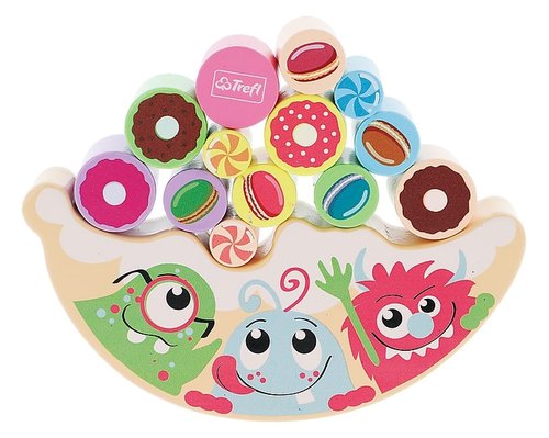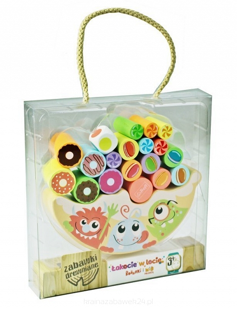Łakocie w Locie to zabawka wykonana z wysokiej jakości naturalnego drewna. Zabawa polega na ułożeniu nad głowami ciasteczkowych potworków jak największej ilości łakoci przy jednoczesnym zachowaniu równowagi całej konstrukcji. Znakomite rozwiązanie dla dzieci od 3 roku życia, które dzięki zabawce poznają pojęcie równowagi oraz nauczą się cierpliwości Łakocie w locie pobudzają wyobraźnię, uczy koncentracji i wzmacniają relacje.