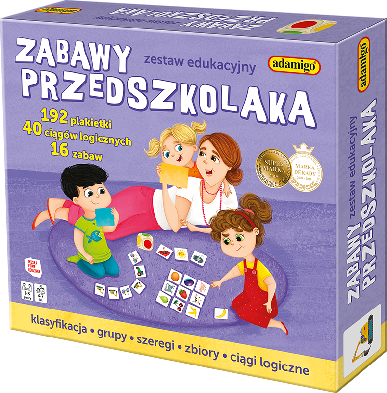 Opis produktuZasady bezpieczeństwaBogaty zestaw edukacyjny do nauki przez zabawę w przedszkolu lub w domu. Sprawdzi się dla jednego dziecka jak i większej grupy. Na 16 dwustronnych kartach znajdują się propozycje zabaw, które wspierają rozwój poznawczy, uczą łączenia w pary, logicznego myślenia oraz ćwiczą pamięć i koncentrację. Na pozostałych 20 dwustronnych kartach znajdują się ciągi logiczne. 192 tafelki przedstawiają ilustracje bliskie dzieciom. Każda ilustracja powtarza się cztery razy. Tafelki mogą także pełnić rolę nagród i odznaczeń. x