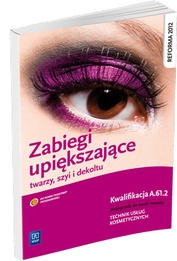 Podręcznik do nauki zawodu technik usług kosmetycznych realizujący treści z zakresu części 2 kwalifikacji A.61(Wykonywanie zabiegów upiększających twarzy, szyi i dekoltu). Prezentuje wiedzę i uczy umiejętności potrzebnych do wykonywania zabiegów upiększających twarzy, szyi i dekoltu w gabinecie kosmetycznym (budowa skóry, rozpoznawanie różnych rodzajów cery, metody upiększania oczu i i ich oprawy, techniki makijażu, przeciwskazania wobec wykonywania niektórych zabiegów). Wiedza teoretyczna wsparta jest licznymi przykładami, ćwiczeniami i kolorowymi ilustracjami wskazującymi sposoby praktycznego jej wykorzystania.