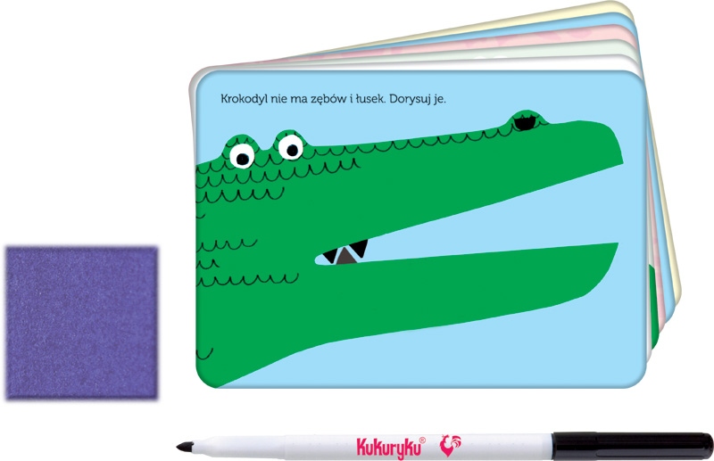 Zadania z rysowania to zestaw tablic suchościeralnych z mazakiem i 48 zabawnymi zadaniami, które przygotowują dzieci do nauki pisania, pomagają w koncentracji, zachęcają je do pracy oraz uczą precyzji.