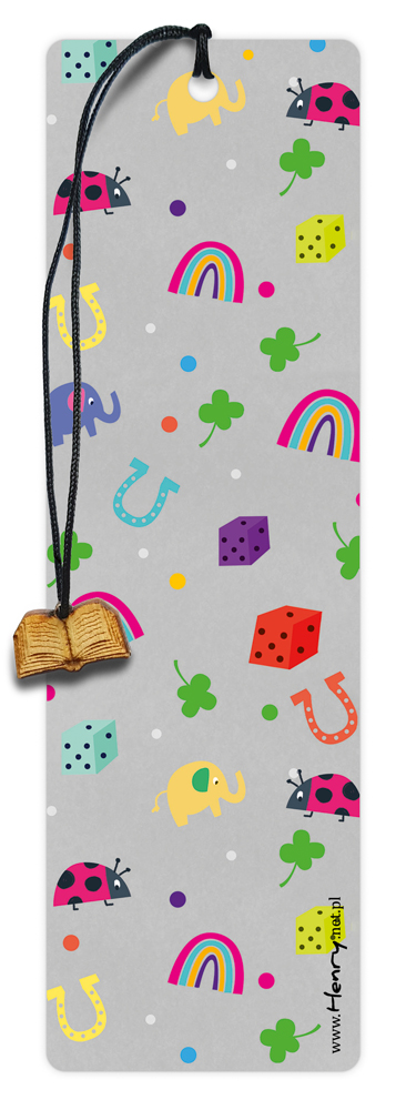 Zakładka do książki z sentencją. Dwustronna, ozdobiona derwnianą zawieszką w kształcie książki.