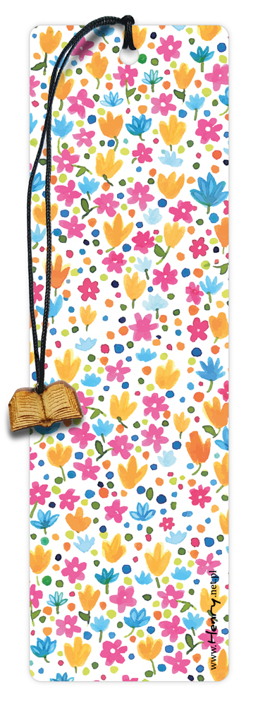 Zakładka do książki z sentencją. Dwustronna, ozdobiona derwnianą zawieszką w kształcie książki.