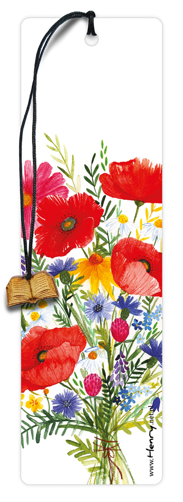 Zakładka do książki z sentencją. Dwustronna, ozdobiona derwnianą zawieszką w kształcie książki.