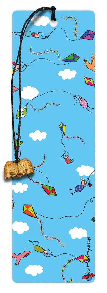 Zakładka do książki z sentencją. Dwustronna, ozdobiona derwnianą zawieszką w kształcie książki.