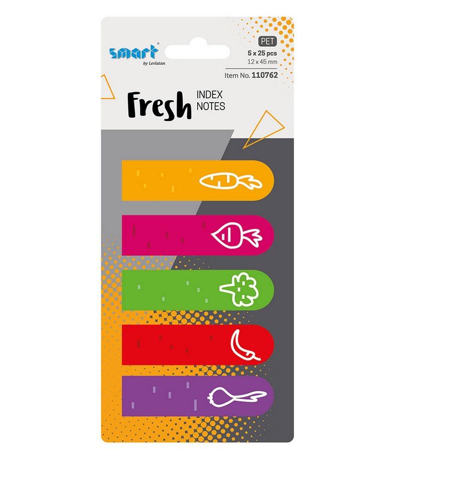 Opis produktuZasady bezpieczeństwaAbsolutnie świeże i wyjątkowe. Doskonałe wyróżnienie wskazanego tekstu. Zakładki są wykonane z folii PET, można je wielokrotnie przyklejać i odklejać, można po nich pisać. Każdy komplet to 5 wzorów po 25 zakładek o wymiarach 45x12 mm. x