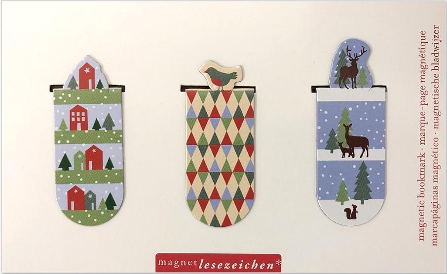Zakładki magnetyczne - Zima 2. Pięknie ilustrowane zakładki z wystającymi, ozdobnymi elementami. Idealne do zaznaczania ostatnio czytanych lub ulubionych fragmentów książek. Doskonale sprawdzają się w indeksowaniu notatek, dokumentów w biurze, w szkole i w domu. Każdy zestaw zawiera 3 zakładki o różnych wzorach. Trzy zakładki magnetyczne w zestawie są tematycznie skoordynowane. Skomponuj własną kolekcję z zakładkami: Wiosna, Lato.