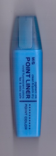 Zakreślacz plastikowa obudowa ścięta końcówka jaskrawy, żywy kolor niebieski